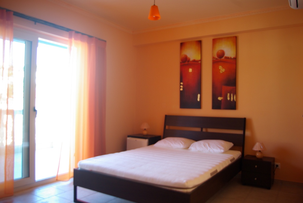 De kamers zijn huislijk ingericht en hebben in tegenstelling tot de meeste Griekse verblijven niet de gekende witgekalkte muren en een spaarlamp. Maar zijn aangenaam gekleurd met moderne verlichting. Ze hebben allen een badkamer met douche. De kamers worden 2 dagelijks gereinigd en om de 4 a 5 dagen worden bed en badlinnen vervangen.